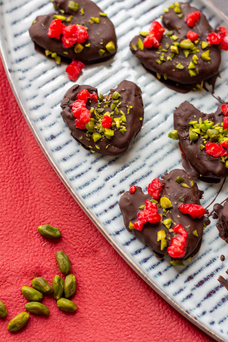 Das perfekte Geschenk zum Valentinstag sind diese süßen Schoko Dattel-Herzen. Liebe liegt in der Luft und sie schmeckt köstlich!